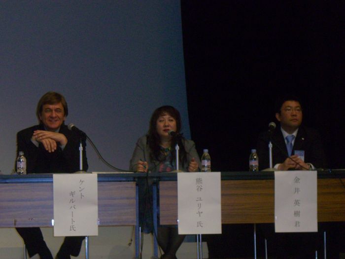 ケント・ギルバート氏 熊谷ユリヤ氏 金井英樹 理事長 |