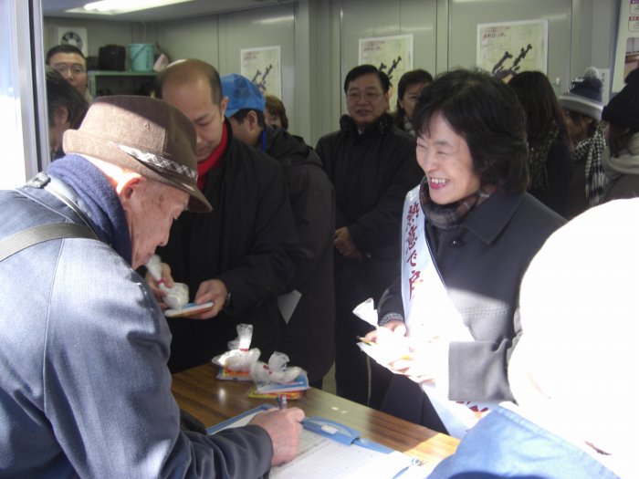 署名コーナーで呼び掛けをする