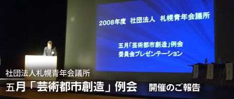 2008年5月10日(土)札幌市教育文化会館にて、五月「芸術都市創造」例会〜楽しもう芸術を、広げよう芸術の輪を〜が開催されました。