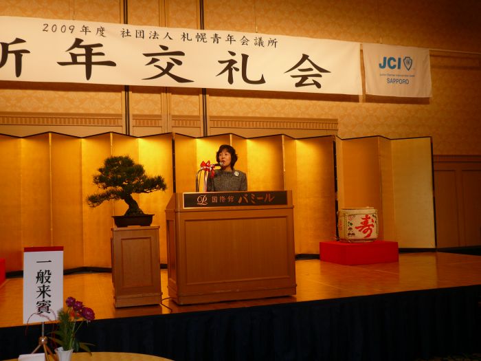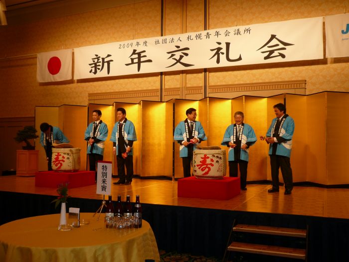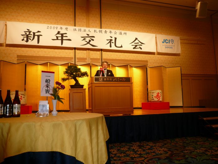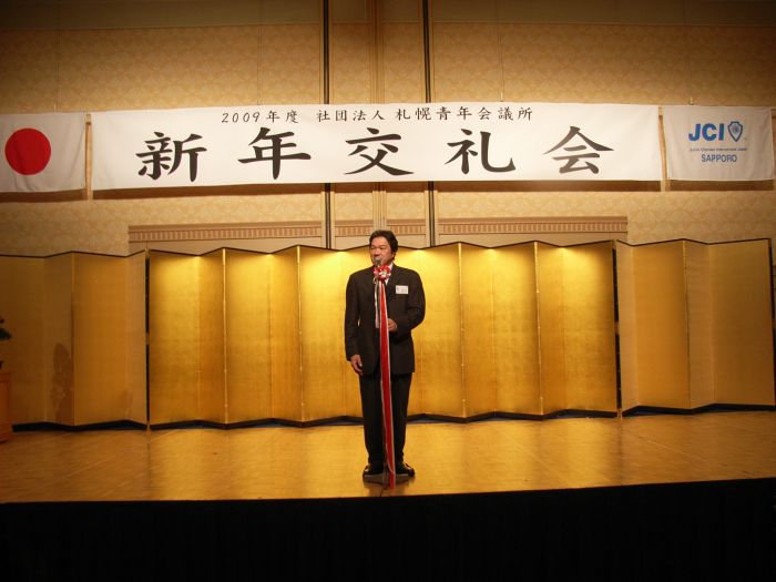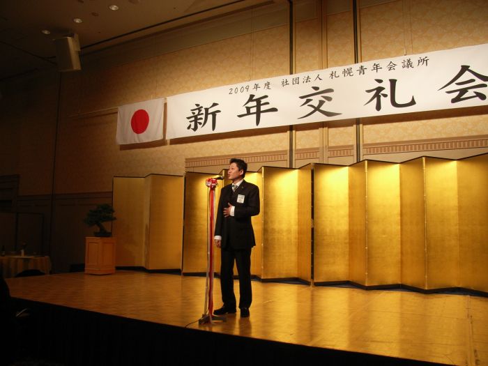 2009年1月14日(火) 札幌プリンスホテルパミール館にて一月「新年交礼会」が開催されました。 「誇り高きリーダーとして!〜愛する地域(まち)にできること〜」というスローガンの下、佐々木理事長率いる2009年度社団法人札幌青年会議所がいよいよスタートいたしました。 新年交礼会へは、北海道知事 高橋はるみ氏や札幌市長 上田文雄氏をはじめ、約170名のご来賓の方にご参列いただきました。新年交礼会の中では、今年度の理事長である佐々木理事長より、2009年度社団法人札幌青年会議所の運動方針や新体制について披露いたしました。 ご参加いただきました皆様、ありがとうございました。