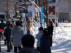 政府は1981年(昭和56年)1月6日の閣議で2月7日を「北方領土の日」とすることを決定しており、道では、2月7日を中心とした1月21日から2月20日までの1ヶ月間を「北方領土の日」特別啓発期間と定め、全道各市町村や関係団体と協力し各種啓発活動を展開しており、特に2月5日(木)〜11日(水・祝)の雪まつり開催期間に合わせて大通西6丁目会場に「北方領土返還要求署名コーナー」が設置され、私たち(社)札幌青年会議所メンバーも署名運動のご協力をさせていただきました。