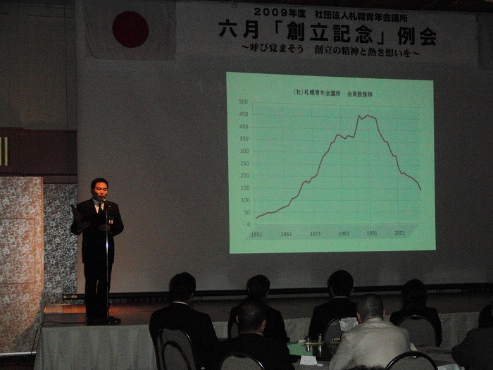 2009年6月10日(水)18時30分より、札幌パークホテルにて六月「創立記念」例会を開催致しました。創立58年目を迎えた本例会では、大変多くの特別会員の皆様にご出席を賜りましたことを深く御礼申し上げます。