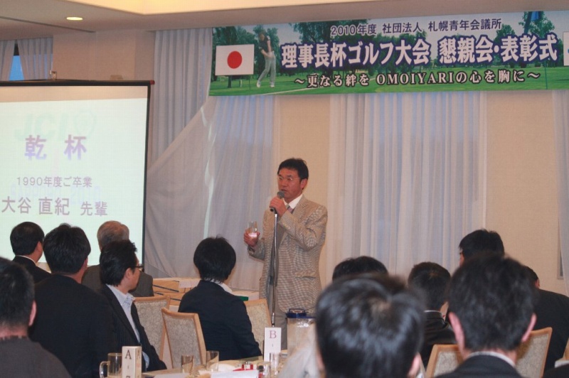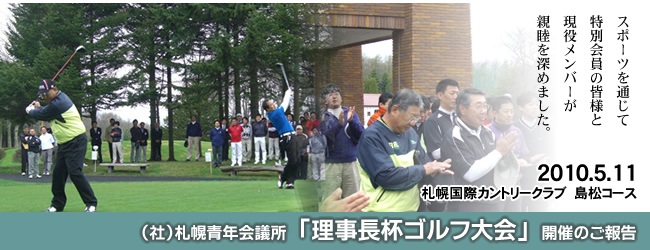 5月11日(火曜日)「更なる絆を OMOIYARIの心を胸に」をテーマに2010年度理事長杯ゴルフ大会が札幌国際カントリークラブ島松コースにて行われ、現役メンバーはもとより多くの特別会員にもご参加いただき、総勢118名のご参加にて盛大に開催されました。当日はゴルフを通じて特別会員と現役メンバーが互いに親睦を図り、新たな交流を育む場面も多く見られ、現役メンバーにとっては今後のJC運動への大きな活力となりました。