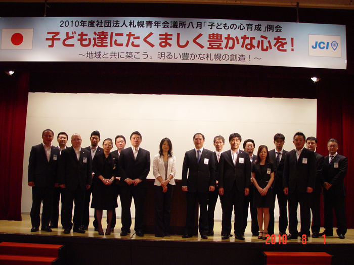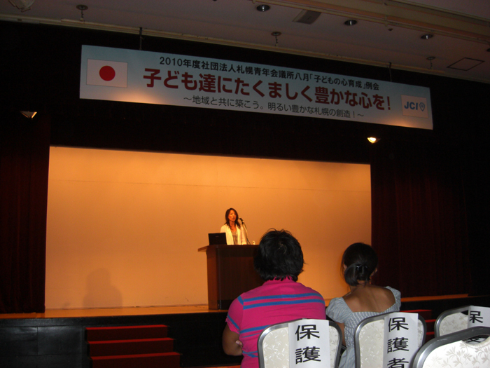 2010年8月1日(日曜日)「子ども達にたくましく豊かな心を!」〜地域と共に築こう。明るい豊かな札幌の創造!〜をテーマに八月「子どもの心育成」例会がホテルさっぽろ芸文館で行なわれました。当日は多くの市民や教育関係者にご参加いただき、現代の子ども達の問題や取り巻く環境、子どもの教育に今何が必要なのか、講師安永愛香氏の実体験よりお話を聞くことができました。未来を担う子ども達が心身共に健やかに成長するために今必要なこと、そして家族や地域の絆の大切さを市民の皆様と一緒に考える機会となりました。