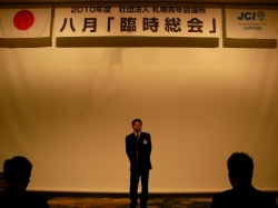 (社)札幌青年会議所の最高議決機関である本総会において、現役メンバー一人ひとりが議決権を行使し、2010年度ブルーアース基金助成金授与団体や2011年度理事長予定者の承認などについて、慎重かつ迅速な審議が執り行われました。全ての議案について、満場一致をもって可決承認されましたことをご報告申し上げます。
