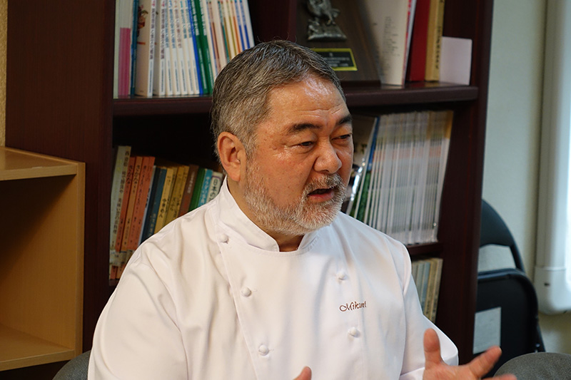 僕がここまで来れたのは16歳の時、札幌グランドホテルの洗い場に入り18歳の時、帝国ホテルの料理長の村上さんの存在を知ります。その時、北海道の若造が一流のホテルに行っても相手にされないと周りから言われましたが、自分の中の志としてグランドホテルよりも高い山があるなら登ってみようという気持ちで津軽海峡を渡りました。そして20歳の時、村上料理長から海外に行きなさいと言われ、スイスのジュネーブに派遣され、その際「10年は帰って来るな、10年後君たちの時代が必ず来るから、それまでしっかり本場の料理や技術を吸収してこれから来る時代に備えなさい」と言われました。当初、札幌から東京まで行く事自体が、宇宙に行くような感覚だった私にはヨーロッパに渡ろうという野心はありませんでした。しかし、村上料理長の言葉を胸に28歳の頃に帰国するまで、ヨーロッパにいました。そして、私が30歳の時に四谷でオテル・ドゥ・ミクニをオープンしました。その当時の日本はバブル経済の中で勢いに乗る事が出来ました。