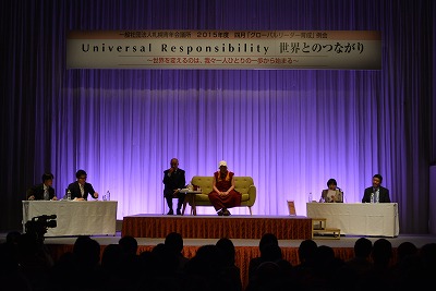 本例会は、Universal Responsibility 世界とのつながり ~世界を変えるのは、我々一人ひとりの一歩から始まる~をテーマに、札幌の抱える課題を体系的に理解すると共に、自らが地域を牽引し、世界を変革するグローバルリーダーを目指していただく目的で開催されました。今回が初来道となるダライ・ラマ法王14世 氏からは、リーダーの資質について、広い目で物事を見通す力が必要であり、その資質をもつ若い世代を育てていくには、次代のために正しい教育、倫理観、愛情、優しさ、慈悲の心を伝えていく必要があるというお話をいただきました。
