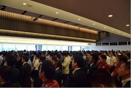 18日(土)10時30分より、パシフィコ横浜 会議センター503にて「結団式」が開催され、柴田 剛介 会頭よりサマーコンファレンスの歴史を紹介していただき、今回初めて取組む地域再興政策コンテストの紹介がありました。また、開催地LOM(一社)横浜青年会議所の稲葉 崇浩 理事長、および関東地区担当の佐藤 友彦 常任理事の挨拶に続き、サマーコンファレンス運営委員会 星野 真一 委員長により渾身の気合い入れが行われ、ニッポンサイコー三唱にて大会の大成功に向けての想いを一つにしました。
