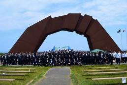 12日(日)は、10時より、根室市納沙布岬・望郷の岬公園野外特設会場にて大会式典が行われました。返還運動原点の地である納沙布岬・四島のかけ橋を前に北方四島を望みつつ、全メンバー、来賓、返還運動関係団体、報道関係者が参加し、日本JC役員並びに御来賓の皆様より問題解決に向けた力強いメッセージが発信されました。