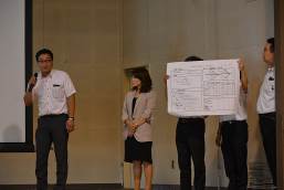 その後、第1回育成プログラムで学んだ複雑な概念もコンパクトに表現することができ、理解を早めるための思考整理の手法や、第2回育成プログラムで学んだチームディスカッションでのまとめの集大成である提案を、資源に関する「食」と「ライフスタイル」チームから発表していただき、また札幌青年会議所メンバーに評価を投票していただきました。