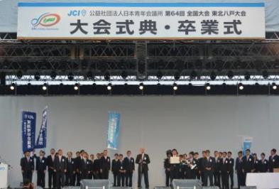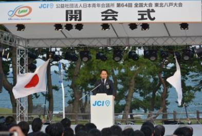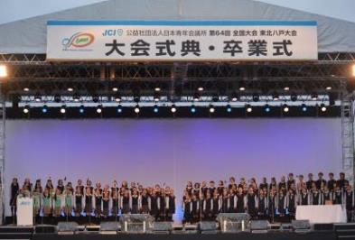 本年度で64回を迎える全国大会は、(公社)日本青年会議所における一年間の運動の集大成の場であります。本年度の全国大会東北八戸大会では、美しく先駆けよう すべては未来を生きる人のために ~市民先導のまちづくりから日本再興へ~をテーマに、地域の持続的な発展が国家最大の懸案の一つとなっている今、愛する故郷の未来へ向けて美しく先駆けるJAYCEEが、八戸に一堂に相集い、この地に息づく市民先導のまちづくりと共に、一年間の集大成となる運動を全国各地へ伝播させ、自立自活した地域へとつなげ、日本再興へ導くことを目的として開催されました。