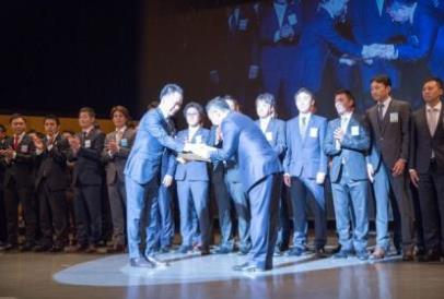拡大褒賞授与式では、昨年度「真の拡大日本一」の(公社)安中青年会議所 高橋 豊 理事長からゴールデンキーが返還されたのちに、本年度「真の日本一拡大LOM賞」(LOMパワー賞)として隠岐青年会議所が発表されました。