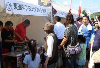 続いて「おもてなし食」堪能タイムでは髙田 延彦 氏が登場し、地元八戸を含む東北のブースを巡り、地元の味覚を堪能されました。