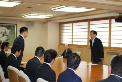 11:30より青森県庁舎において(公社)日本青年会議所 2015年度 柴田 剛介 会頭を始めとする(公社)日本青年会議所 2015年度 役員、青森ブロック協議会 清藤 洋介 会長、(公社)八戸青年会議所 類家 徳久 理事長が大会の開催に先立ち三村 申吾 青森県知事を表敬訪問いたしました。