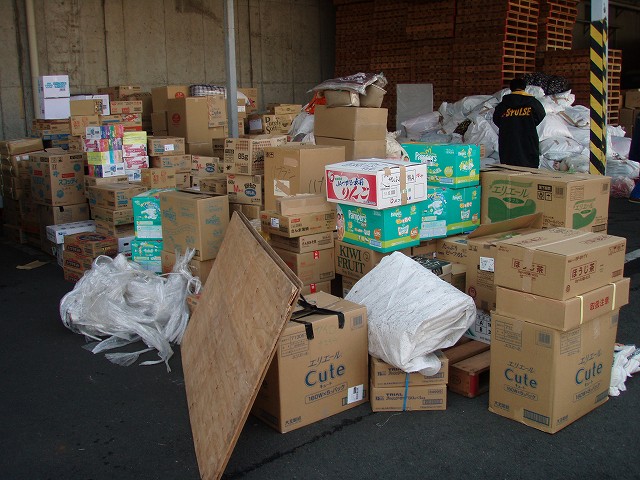 今回の支援物資は水・無洗米・レトルト食品・カップ麺・缶詰等の食料品、ローソク・カイロ・トイレットペーパー・ウェットティッシュ・歯ブラシ・紙おむつ・生理用品・市販医薬品等の日用品の他、燃料約4,000リットルを支援させていただきました。