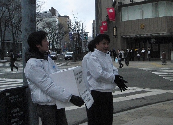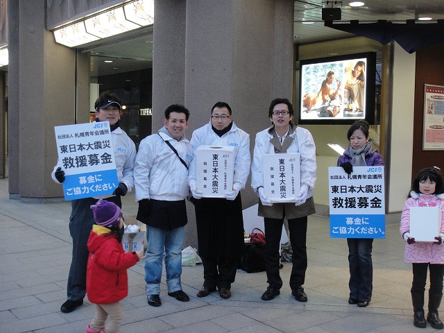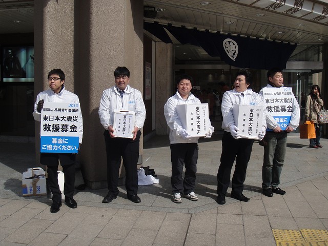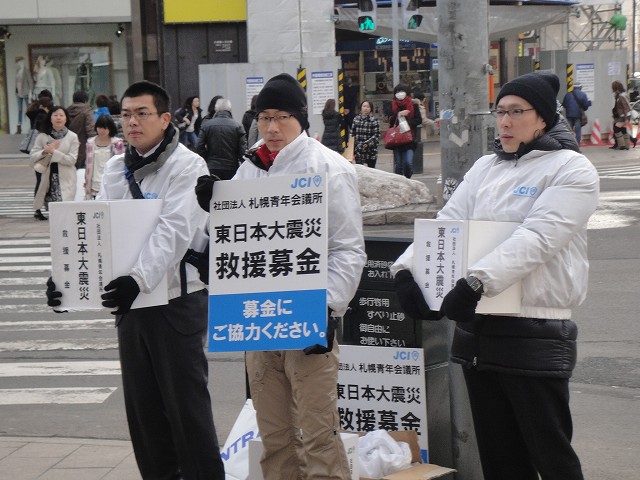3月16日(水)より札幌駅前通4丁目交差点付近にて(社)札幌青年会議所会員が街頭募金活動を実施しております。平日14:00~18:00 土日祝日10:00~18:00となっております。