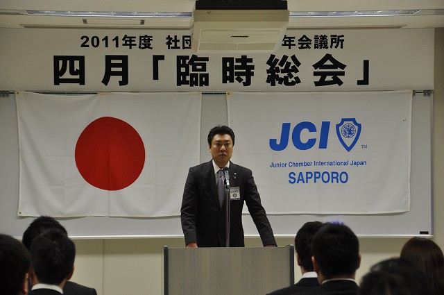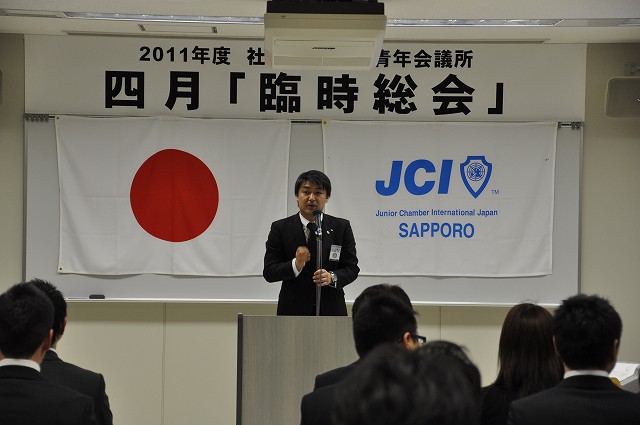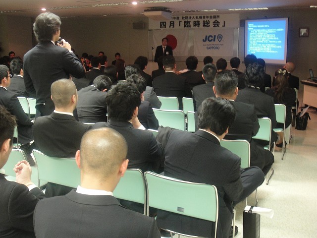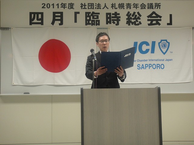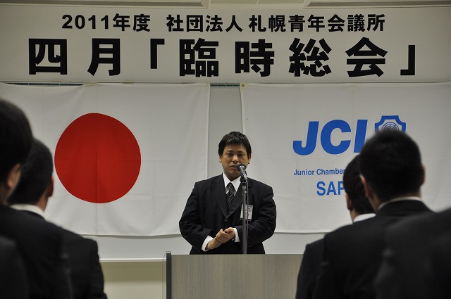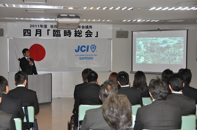 4月5日火曜日、かでる 2.7において2011年度臨時総会が開催されました。この度の震災により、札幌青年会議所の運動のあり方や震災への救援について審議されました。快濶な質疑応答が行われ、全ての議案が可決承認されましたことを報告いたします。