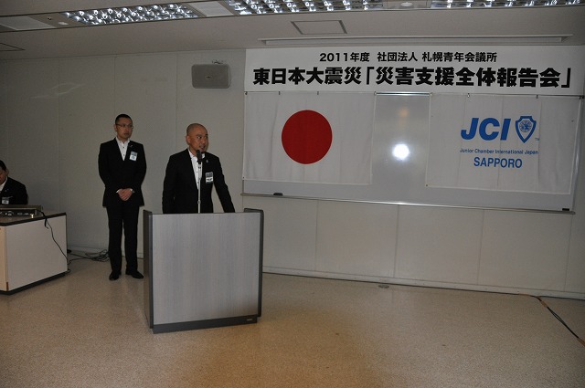 これまで(社)札幌青年会議所は、この度の大震災に伴い数多くのメンバーにて被災者救援活動を実施して参りました。第2回となる本報告会では、これまで行った各支援グループの活動内容を報告いただくと共に今後の支援活動計画について報告されました。引き続き、我々(社)札幌青年会議所では被災救援活動について様々な情報を収集・発信し、効果的な支援活動を実施して参ります。
