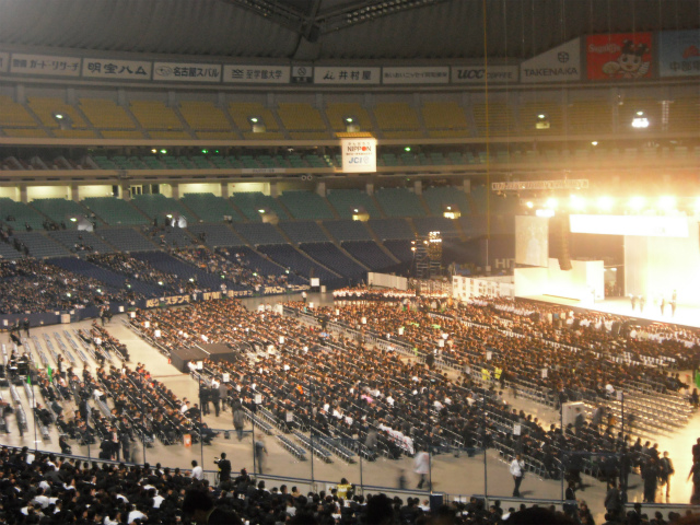 地球博記念公園地球市民交流センターの開会式を皮切りに、名古屋国際会議場での各種会議とセミナー、ナゴヤドームでの卒業式などが行われ、札幌青年会議所メンバーも約70名が名古屋大会に参加いたしました。大会最終日の大会式典では、歴代会頭よりプレジデンシャルリースの伝達を受けた第61代会頭候補者の井川直樹君から、2012年度へ向けて力強いスピーチが行われました。