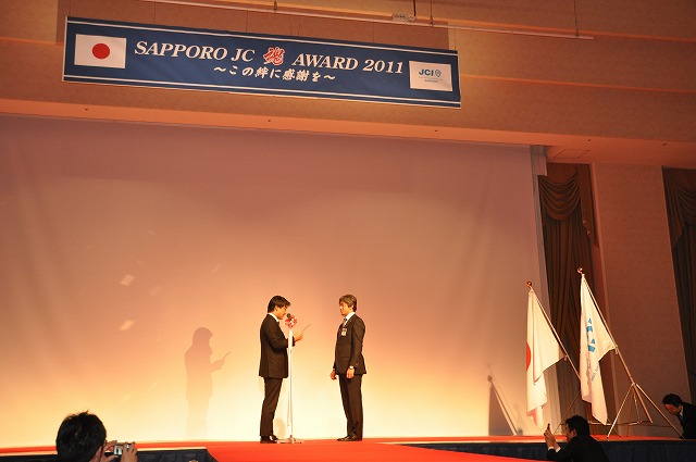 11月29日(火) 十一月「アワードバンケット」例会 ~SAPPORO JC 魂 AWARD 2011~を札幌プリンス国際館パミールにて開催いたしました。本例会では東日本大震災に伴う支援活動をはじめ本年度実践した運動をメンバーと振り返ると共に各賞の受賞者や受賞委員会の活躍を讃えました。また、北嶋理事長より一年間の功績を讃え、各会議体・委員会へ「理事長特別賞」が感謝の言葉と共に贈呈されました。