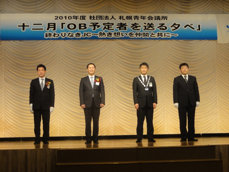 12月7日(火)、本年度で札幌青年会議所を卒業されるメンバーに今までの感謝の意を伝えると共に、新しい門出を祝うため、「OB予定者を送る夕べ」~終わりなきJC 熱き想いを仲間と共に~を開催いたしました。