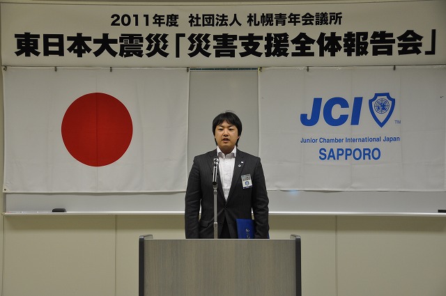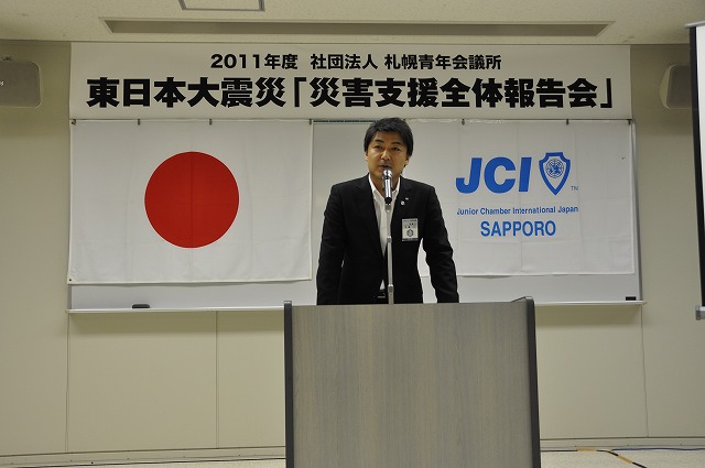これまで(社)札幌青年会議所は、この度の大震災に伴い数多くのメンバーにて被災者救援活動を実施して参りました。第2回となる本報告会では、これまで行った各支援グループの活動内容を報告いただくと共に今後の支援活動計画について報告されました。引き続き、我々(社)札幌青年会議所では被災救援活動について様々な情報を収集・発信し、効果的な支援活動を実施して参ります。