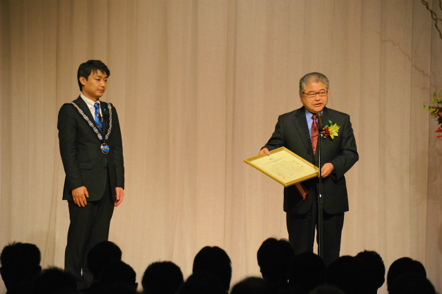本式典では、ご来賓の北海道知事 高橋はるみ様、札幌市長 上田 文雄 様、札幌商工会議所会頭 高向 巌 様に感謝状を贈呈させていただきました。また、運動方針「札幌の未来ビジョン」を発表いたしました。