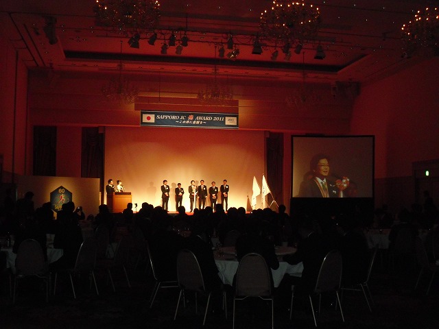 11月29日(火) 十一月「アワードバンケット」例会 ~SAPPORO JC 魂 AWARD 2011~を札幌プリンス国際館パミールにて開催いたしました。本例会では東日本大震災に伴う支援活動をはじめ本年度実践した運動をメンバーと振り返ると共に各賞の受賞者や受賞委員会の活躍を讃えました。また、北嶋理事長より一年間の功績を讃え、各会議体・委員会へ「理事長特別賞」が感謝の言葉と共に贈呈されました。