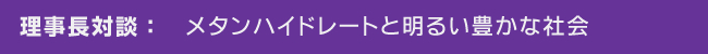 今回の 理事長対談ゲストは札幌市豊平区に研究施設を構える独立行政法人産業技術総合研究所メタンハイドレート研究センターセンター長 成田 英夫氏です。