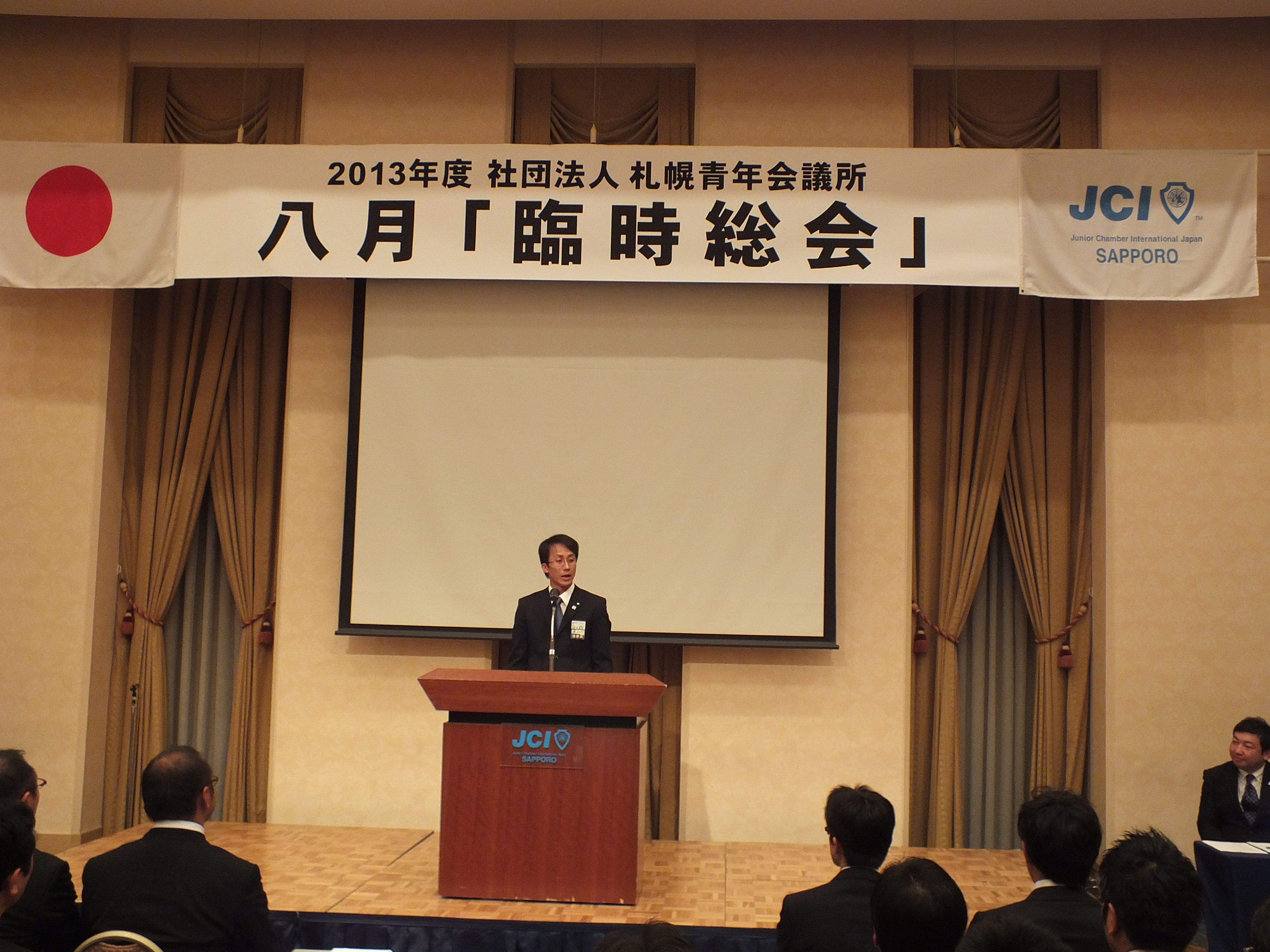 八月「臨時総会」では、五月「臨時総会」で問題となった遅刻者が発生したという点の反省を踏まえ早めの取り纏めを心がけるとともに、事務局長・各委員長及び幹事に対して総会への出席を積極的に働きかけ、スムーズな運営を心がけました。また、(社)札幌青年会議所の諸規程変更という大変重要な案件であったため紙資料の配布を行い、しっかりと諸規定の変更内容を把握してもらうことに努め、厳粛な総会にすることを心がけました。しかし、出席率の低下という大変残念な結果となってしまい、新たな課題が発生してしまいました。今回の反省を踏まえ、委員会回りの徹底や、早目の取り纏め、さらには事務局長・各委員長及び幹事へ一人でも多く出席いただくよう開始日当日まで働きかけを継続し総会の重要性を伝え、十一月「臨時総会」には、多くのメンバーに参加していただけるよう事前準備やリハーサルを入念に行い、より丁寧な総会を運営させていただきます。今回事前準備から、当日の設営に携っていただいた、スタッフ、委員会メンバーの皆様には大変感謝申し上げます。ありがとうございました。