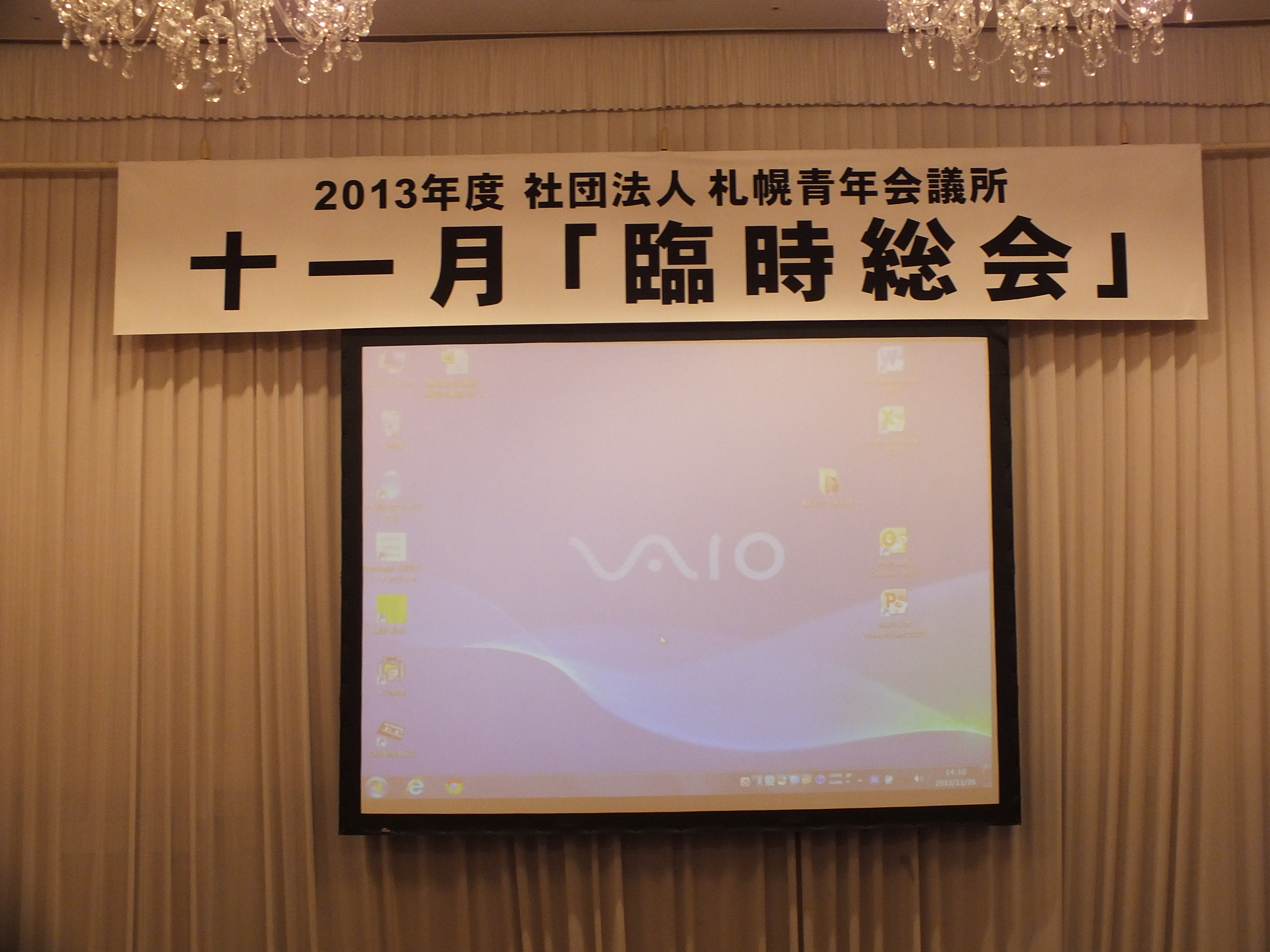 十一月「臨時総会」では、八月「臨時総会」で問題となった出席者が少ないという反省を踏まえ、早めの取り纏めや委員会PRを積極的に行い、事務局長・各委員長及び幹事に対しても総会への出席を働きかけました。また、(社)札幌青年会議所2014年度の体制と運動の方向性を決める大変重要な案件であったため、厳粛な総会にすることを心がけました。しかし、定足数の把握に手間取り、開催時間が遅れたことは反省すべき点であります。今回は、十一月「アワードバンケット」例会との同日開催ということもあり、委員会メンバーもいつも以上に緊張感をもって設営にあたりました。本年度の反省すべき点をしっかりと次年度に引き継ぎ、最高議決機関である総会を今後も厳粛かつスムーズに進行できるように引継ぎを行なってまいります。今回、事前準備から、当日の設営に携っていただいた、スタッフ、委員会メンバーの皆様には大変感謝申し上げます。ありがとうございました。