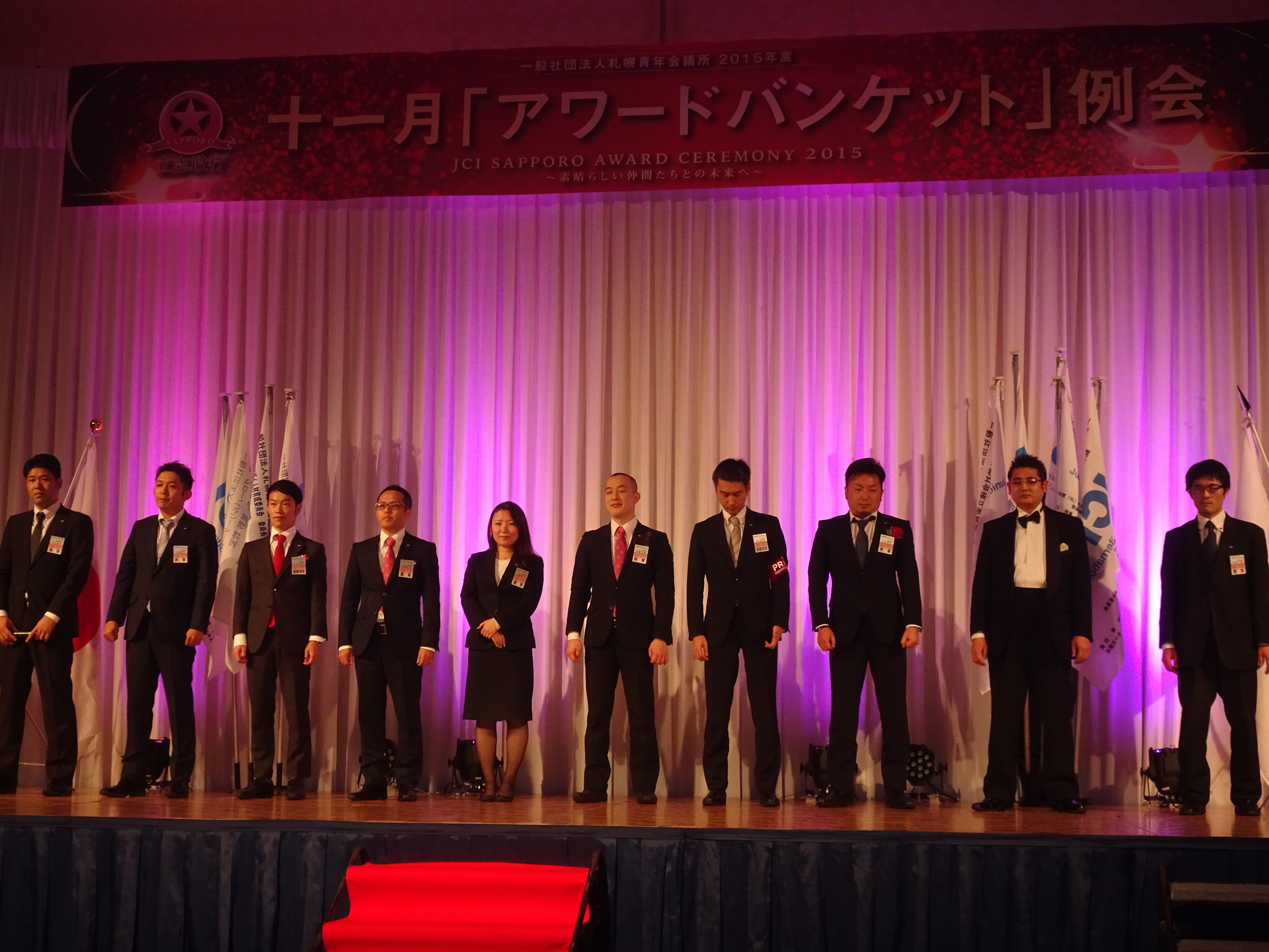 本年度、一般社団法人札幌青年会議所 2015年度は「郷土愛溢れる自律したサッポロの創造」へ向け運動を展開し、さまざまな運動のなかで、より活躍したメンバーを対内褒賞特別委員会にて褒賞要綱を基に、授賞者を定めていただきました。