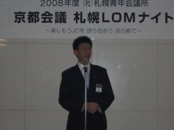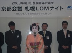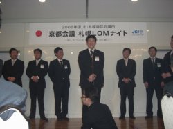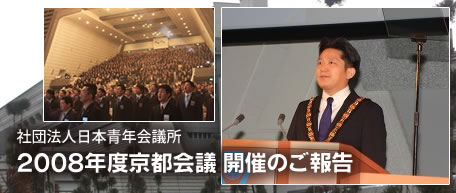 2008年1月17日(木)〜20日(日)までの期間、京都の京都国際会議会館をメイン会場として「社団法人日本青年会議所 京都会議」が開催されました。期間中は、日本青年会議所各委員会によるセミナー等が開催されました。また各地エリア調整会議等も開催され、活発な意見交換が行われました。最終日である20日(日)には新年式典として本年度会頭である小田会頭より会頭演説が行われ、全国から参加されたJCメンバーを前に、2008年の幕開けを飾るにふさわしい、力強い所信表明が行われました。