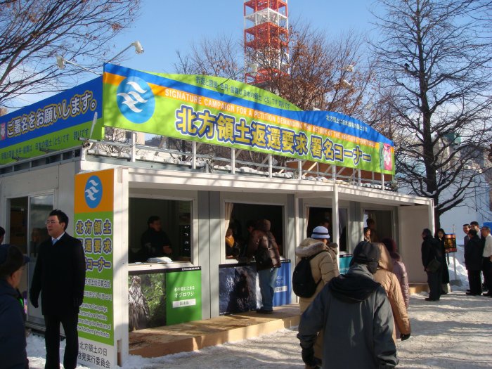 政府は1981年(昭和56年)1月6日の閣議で2月7日を「北方領土の日」とすることを決定しており、道では、2月7日を中心とした1月21日から2月20日までの1ヶ月間を「北方領土の日」特別啓発期間と定め、全道各市町村や関係団体と協力し各種啓発活動を展開しており、特に2月5日(火)〜11日(月・祝)の雪まつり開催期間に合わせて大通西6丁目会場に「北方領土返還要求署名コーナー」が設置され、私たち(社)札幌青年会議所メンバーも署名運動のご協力をさせていただきました。