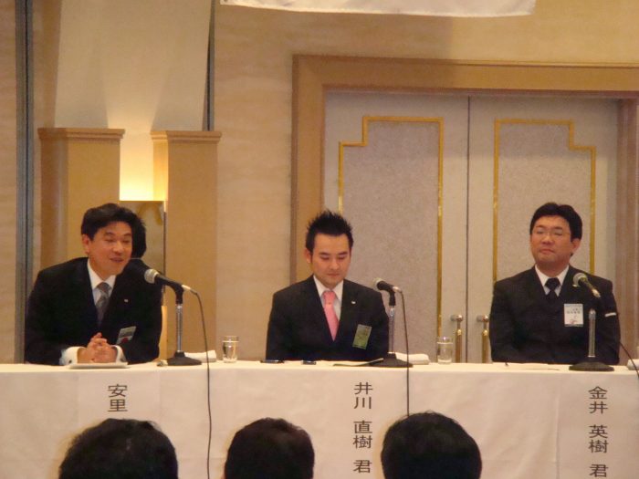 パネリスト紹介 2008年度(社)那覇青年会議所 安里政晃 顧問、2008年度(社)松山青年会議所 井川直樹 総務情報室長、金井英樹 理事長(左から) |