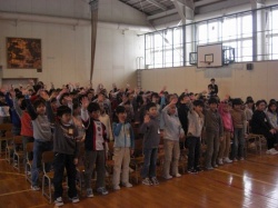 二日目に、山の手南小学校全校を挙げての盛大な歓迎会を開催しました |