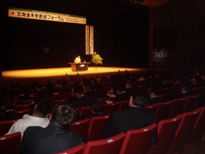 北海道洞爺湖サミットを目前にひかえた中、環境問題と人心の荒廃への問題を提起し、今後の北海道創造に向けたフォーラムとなりました。基調講演として、実際に企業として環境問題に取り組まれている株式会社アレフ代表取締役社長 庄司昭夫氏を講師としてお招きし、企業理念や体験談、未来への提言などをご講演いただきました。また環境ジャーナリストとして広くご活躍されている枝廣淳子氏は、世界の現状を踏まえた中で、今後私達がどのようなビジョンで行動し、意識醸成を図るべきかをプレゼンしていただきました。本フォーラムを通じて、青年会議所メンバー、道民の方々ともに、OMOIYARIのこころあふれる北海道の未来像を抱き今後の発展を感じたことと思います。参加された皆様お疲れ様でした。