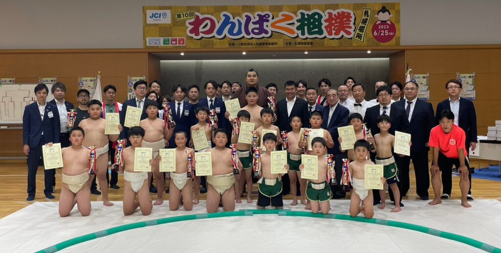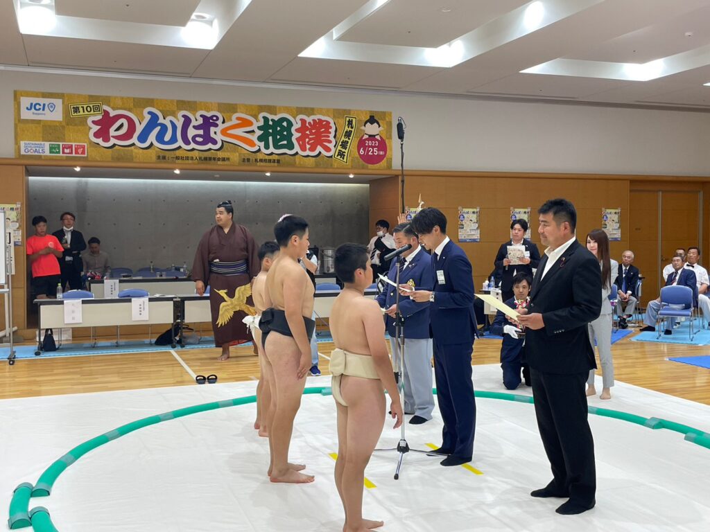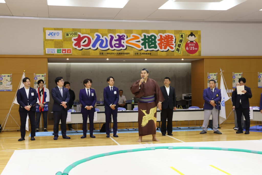 また、当日はサプライズゲストとして、札幌市東区出身で東前頭6枚目の現役力士である北青鵬 治(ほくせいほう おさむ)様にご来場いただき、会場は歓声に沸きました。