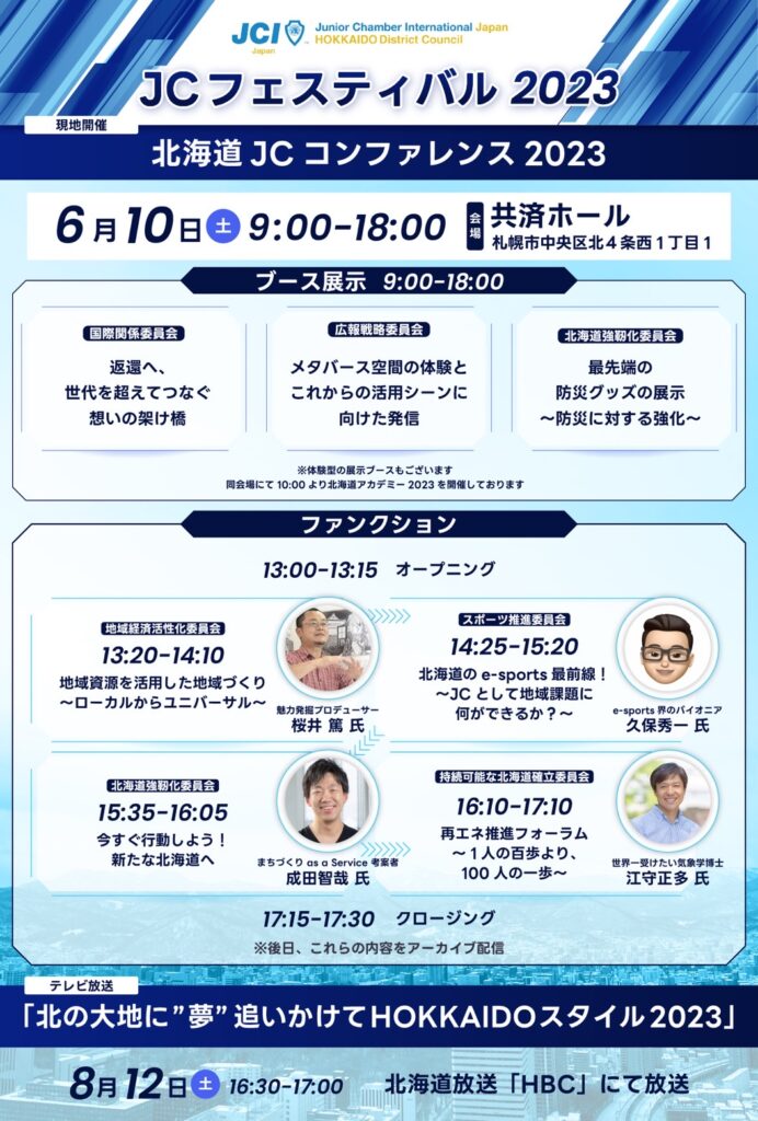 そして、委員長として出向している、JCフェスティバル運営委員会、川嵜委員長から6月10日に開催される、「北海道JCコンファレンス2023」に関するPRが行われました。